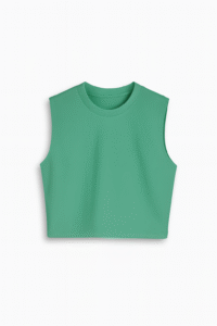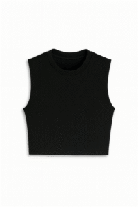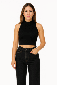 Structured design with a square neckline that flatters the shoulders and enhances the figure. Slightly voluminous sleeves add a feminine, modern, and elegant touch. A straight, sleeveless cropped cut, ideal for pairing with jackets, blazers, or simply jeans. Made from high-quality stretch fabric that is soft to the touch, breathable, and retains its shape beautifully.